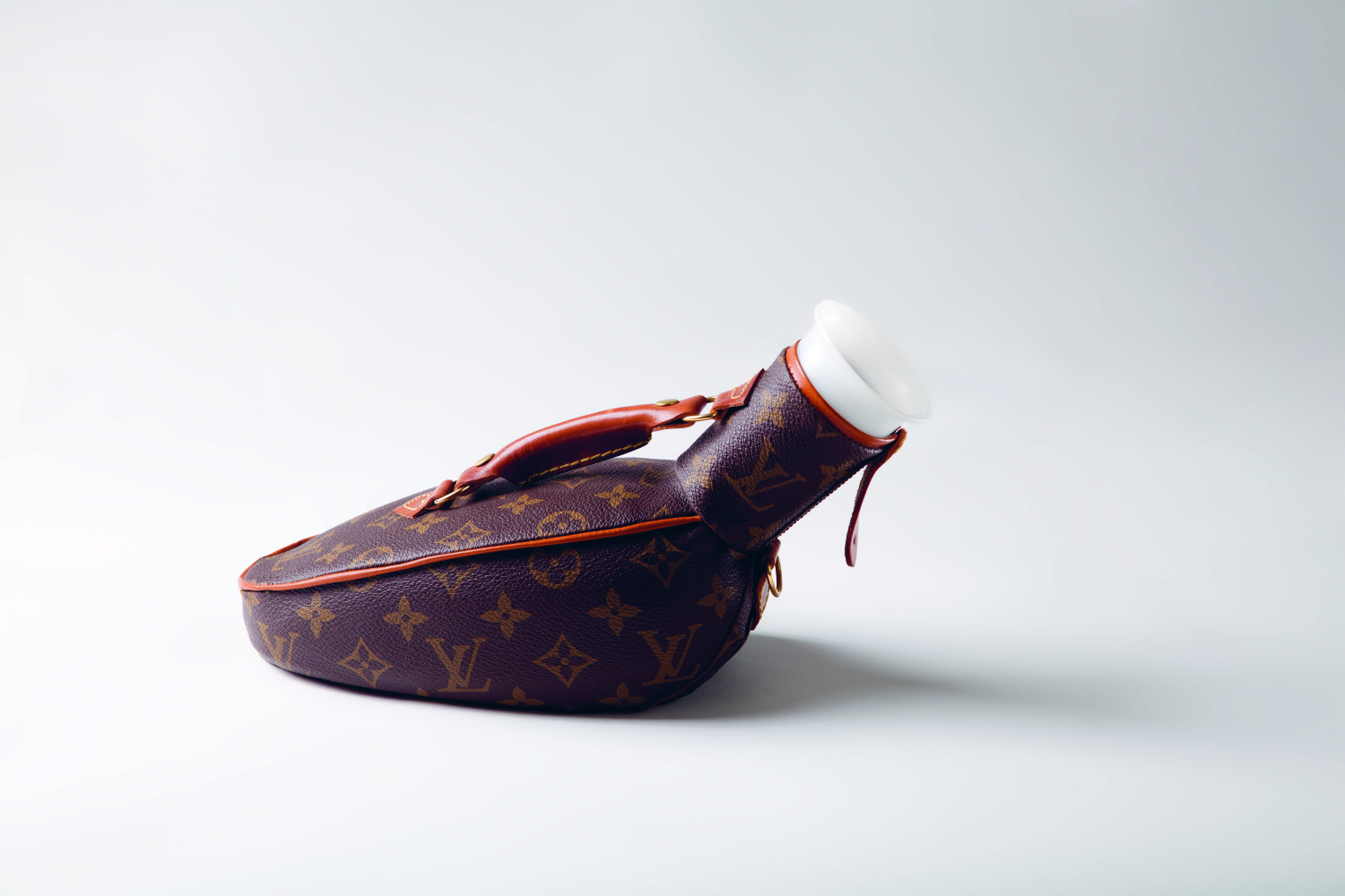 El objeto de uso hospitalario, enfundado por el símbolo del lujo y de lo superficial, nos recuerda la condición evanescente de la vida.